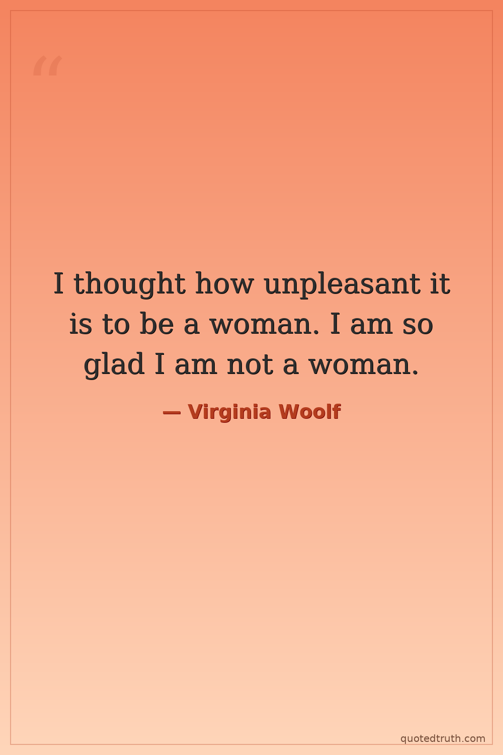 I thought how unpleasant it is to be a woman. I am so glad I am not a woman.