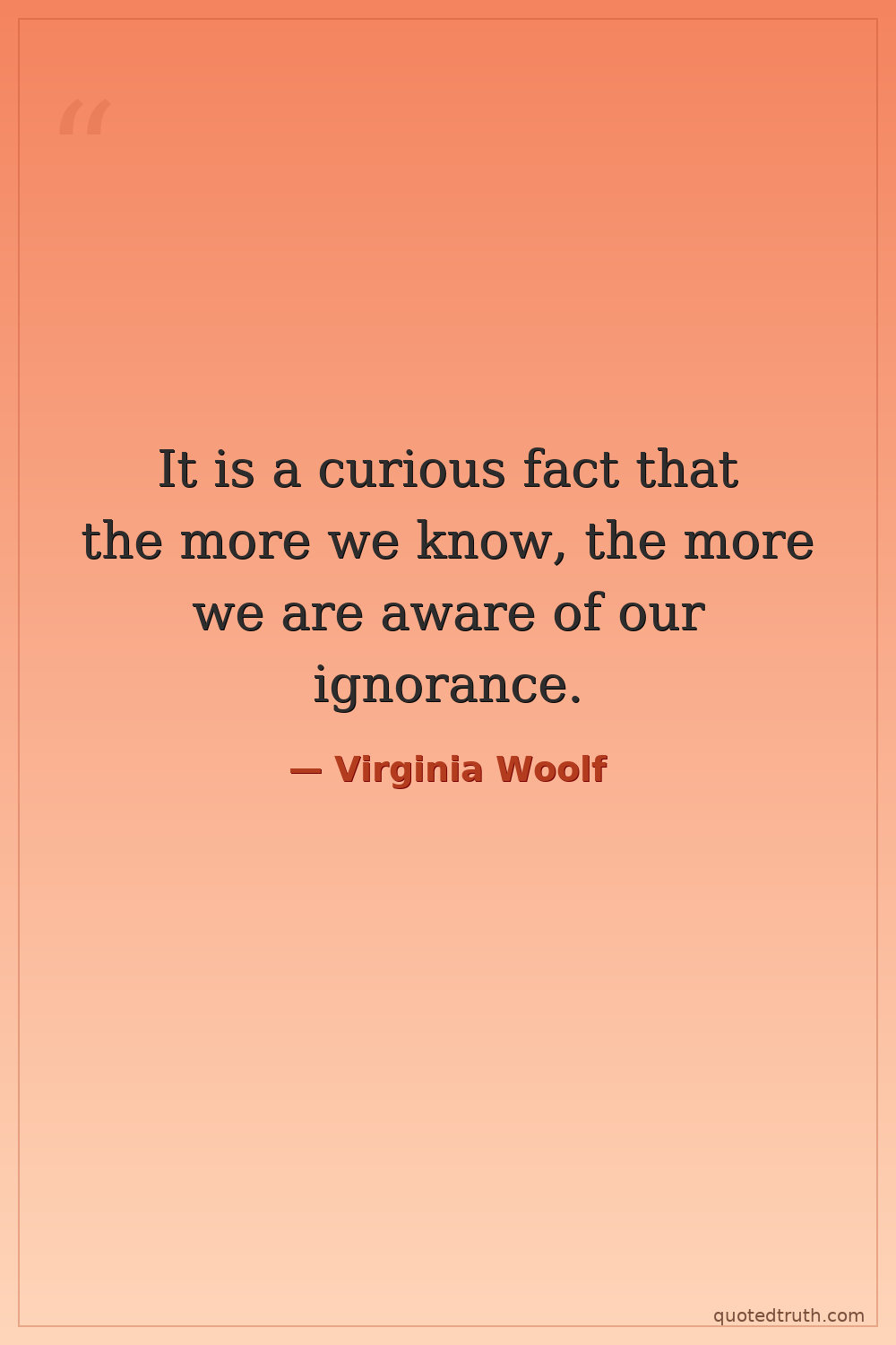 It is a curious fact that the more we know, the more we are aware of our ignorance.