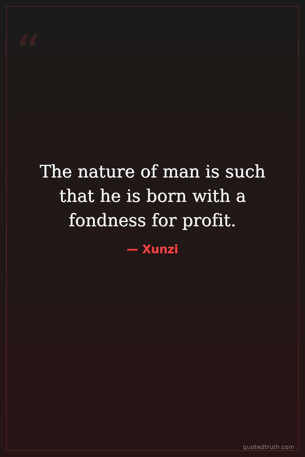 From 'Xunzi', emphasizing his belief in the inherent selfishness of human nature.