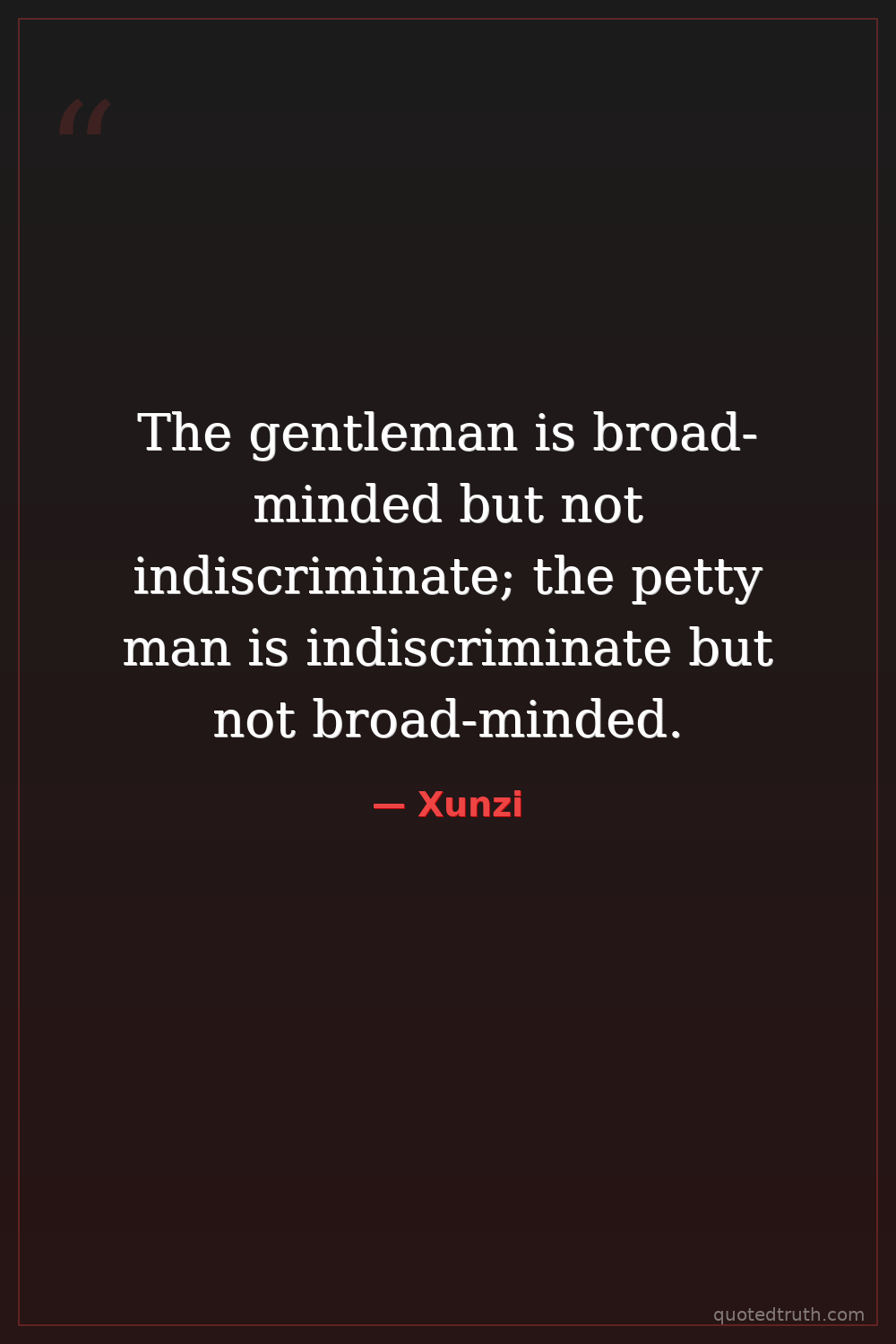 The gentleman is broad-minded but not indiscriminate; the petty man is indiscriminate but not broad-minded.