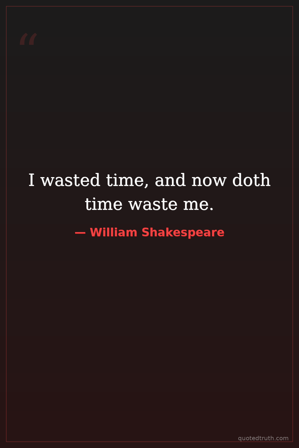 I wasted time, and now doth time waste me.