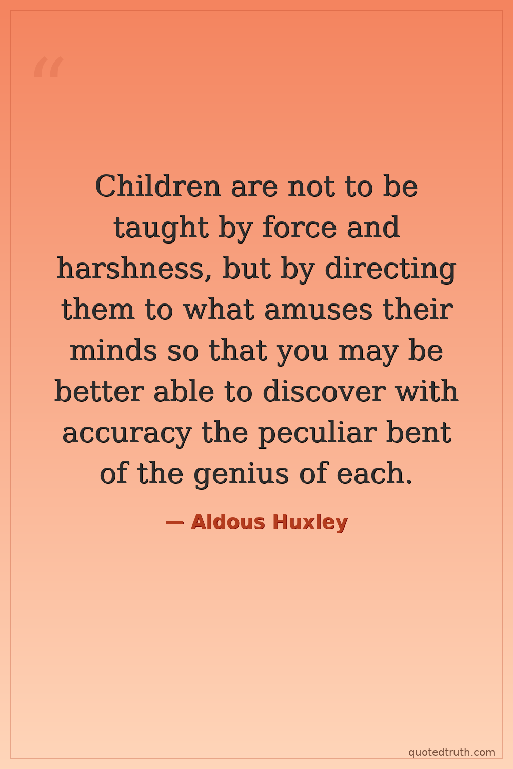Children are not to be taught by force and harshness, but by directing them to what amuses their minds so that you may be better able to discover with accuracy the peculiar bent of the genius of each.