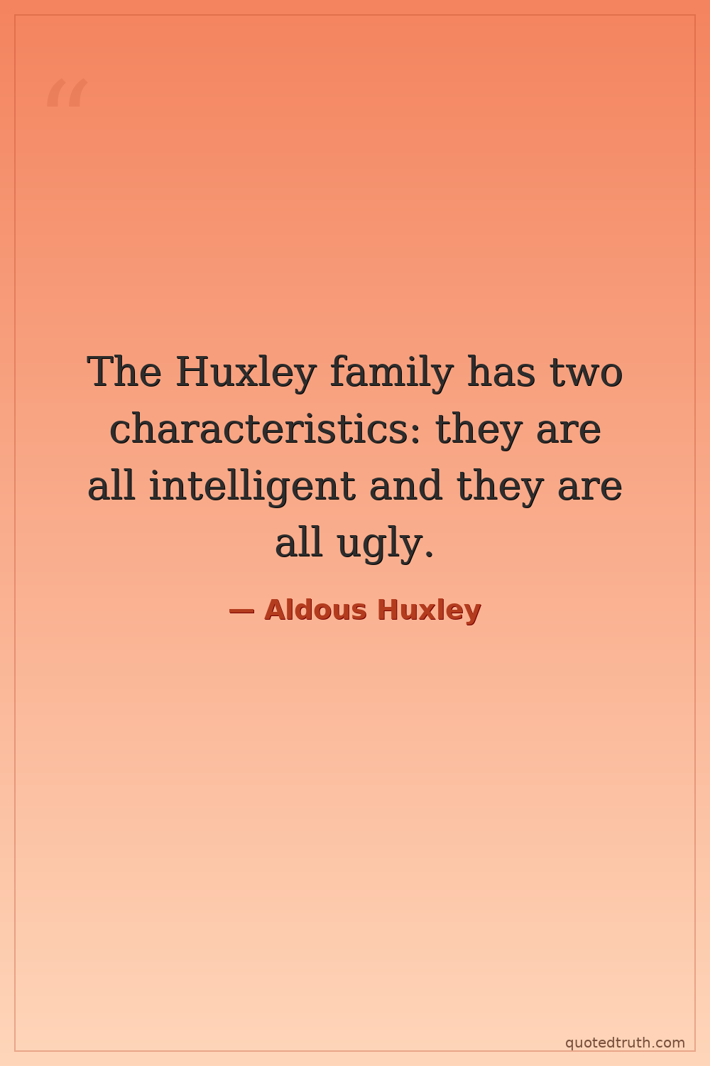 The Huxley family has two characteristics: they are all intelligent and they are all ugly.
