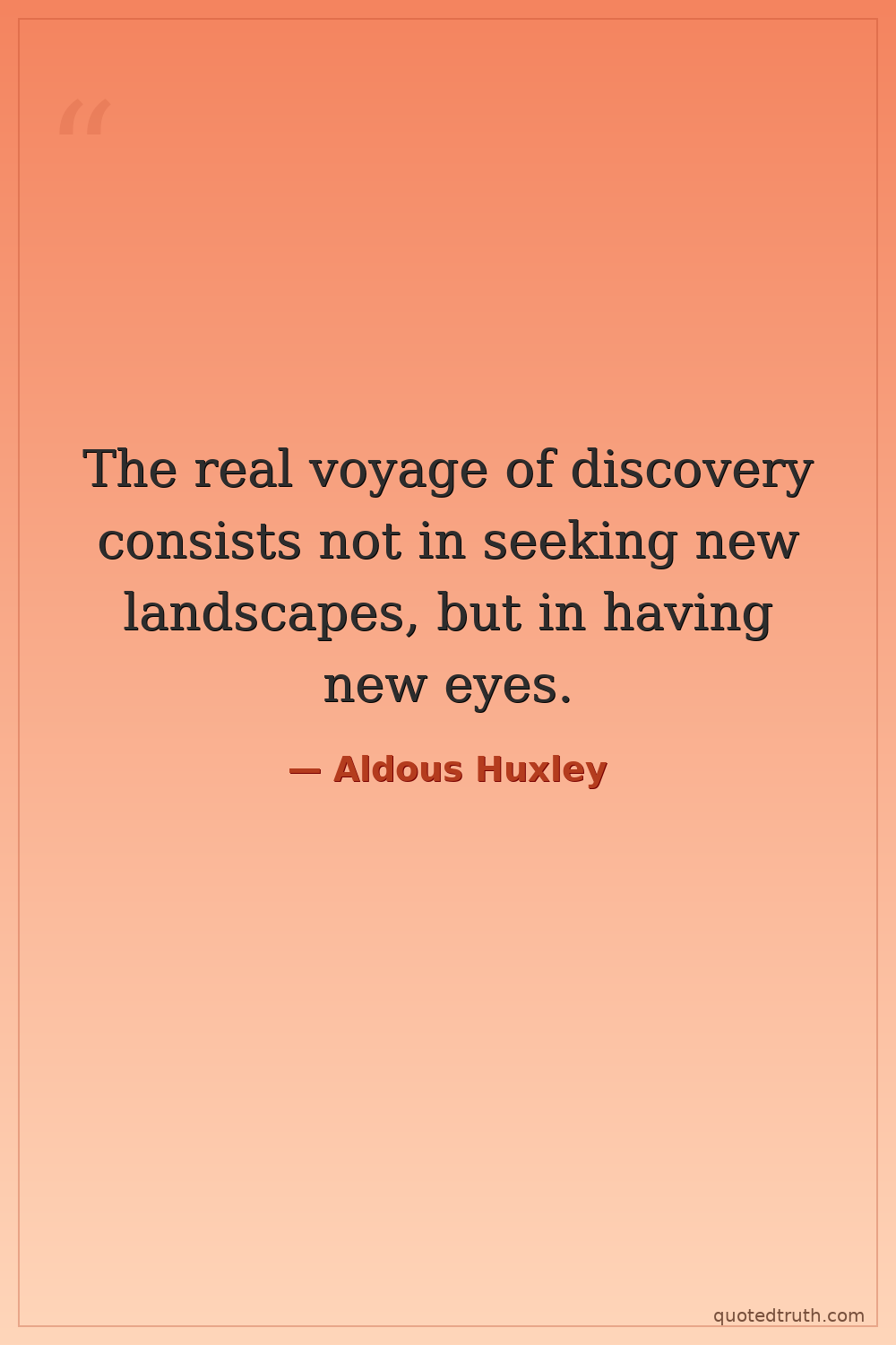 The real voyage of discovery consists not in seeking new landscapes, but in having new eyes.