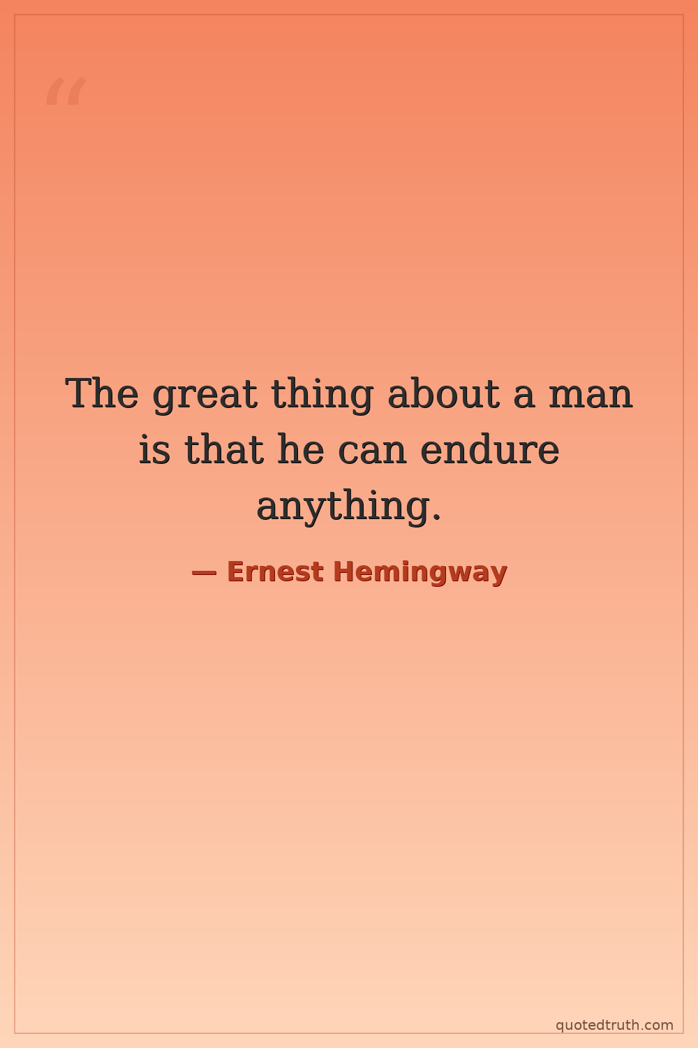 The great thing about a man is that he can endure anything.