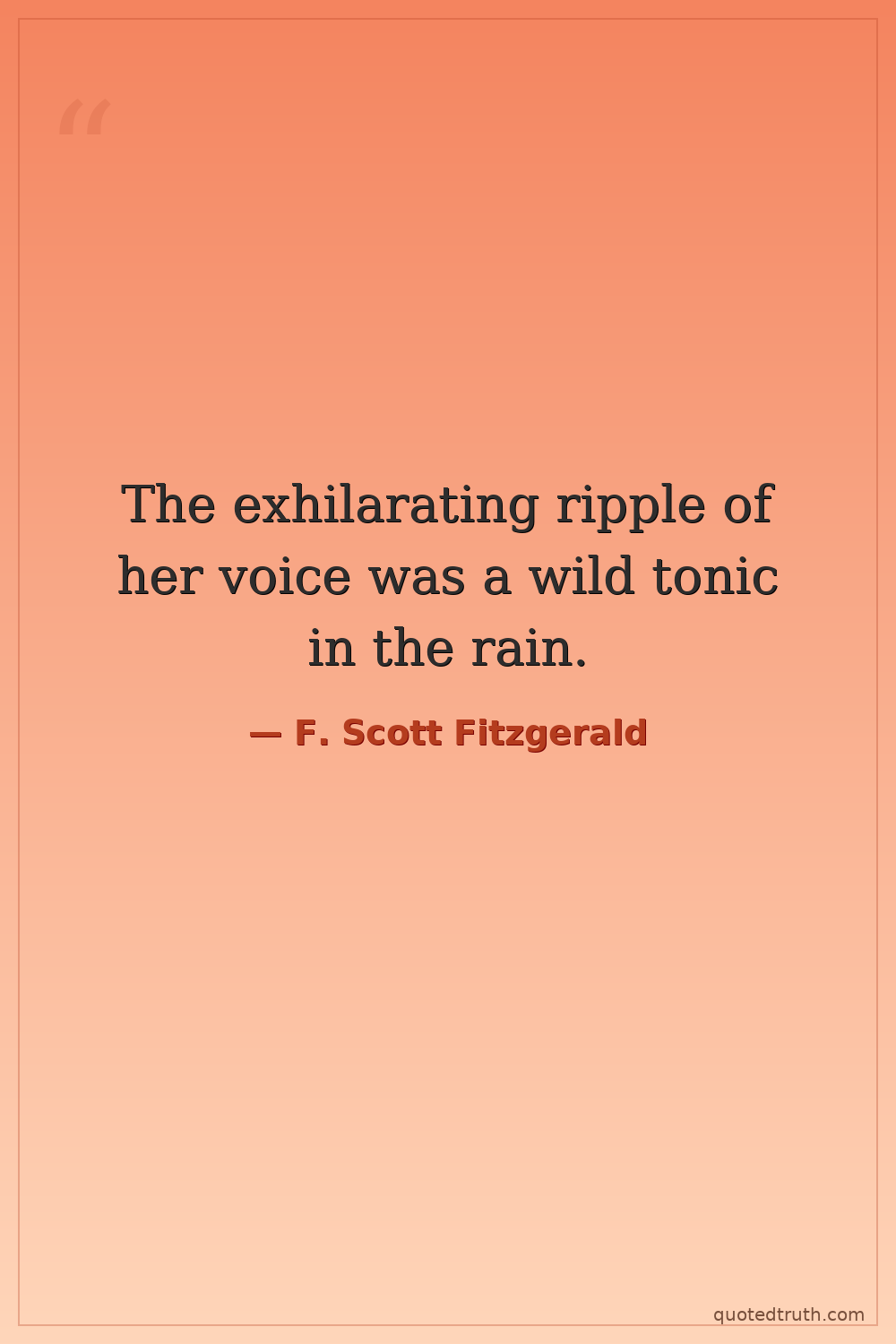The exhilarating ripple of her voice was a wild tonic in the rain.