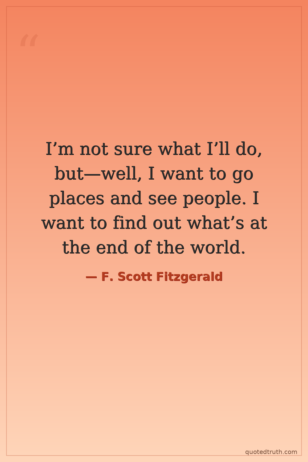 I’m not sure what I’ll do, but—well, I want to go places and see people. I want to find out what’s at the end of the world.