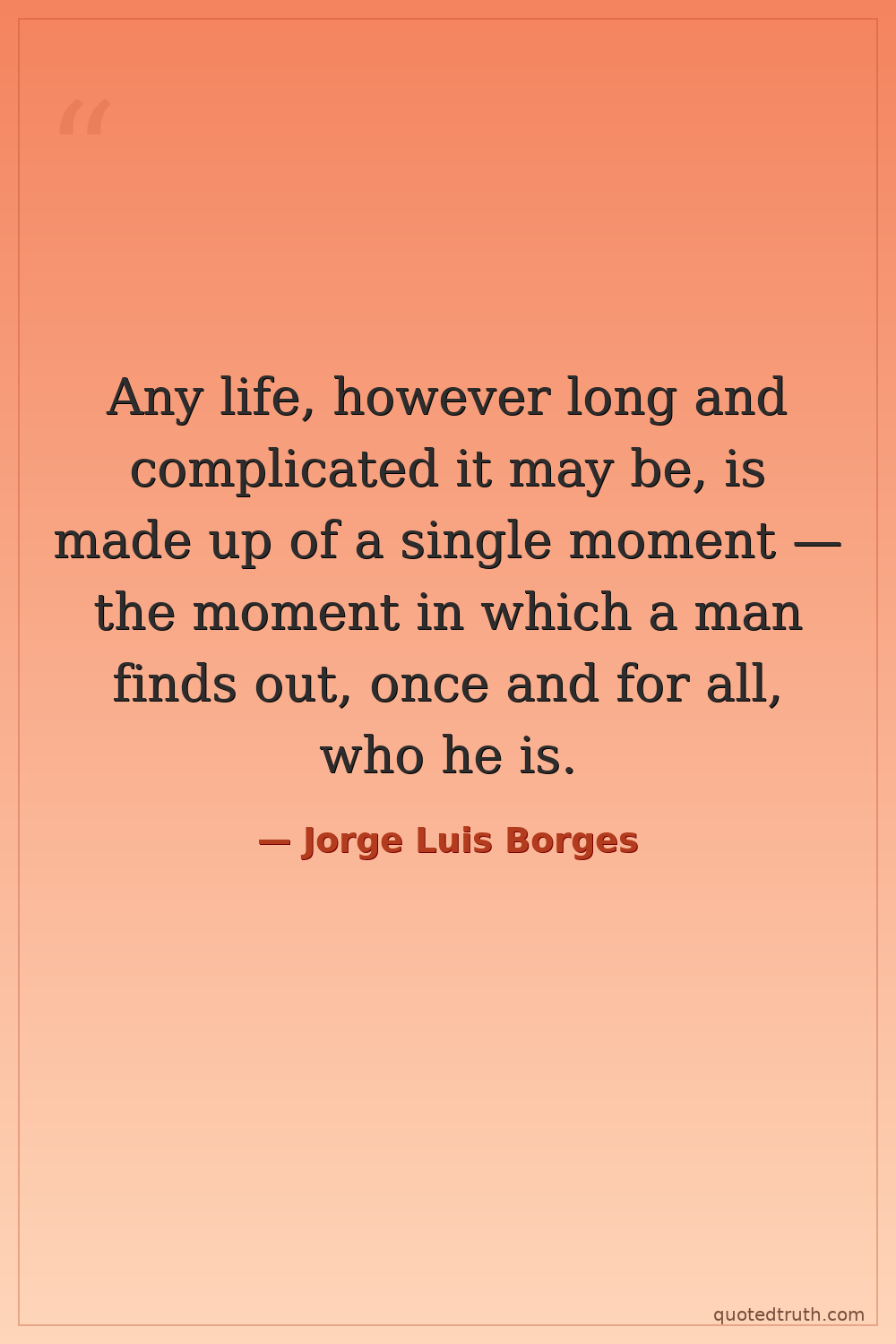 Any life, however long and complicated it may be, is made up of a single moment — the moment in which a man finds out, once and for all, who he is.