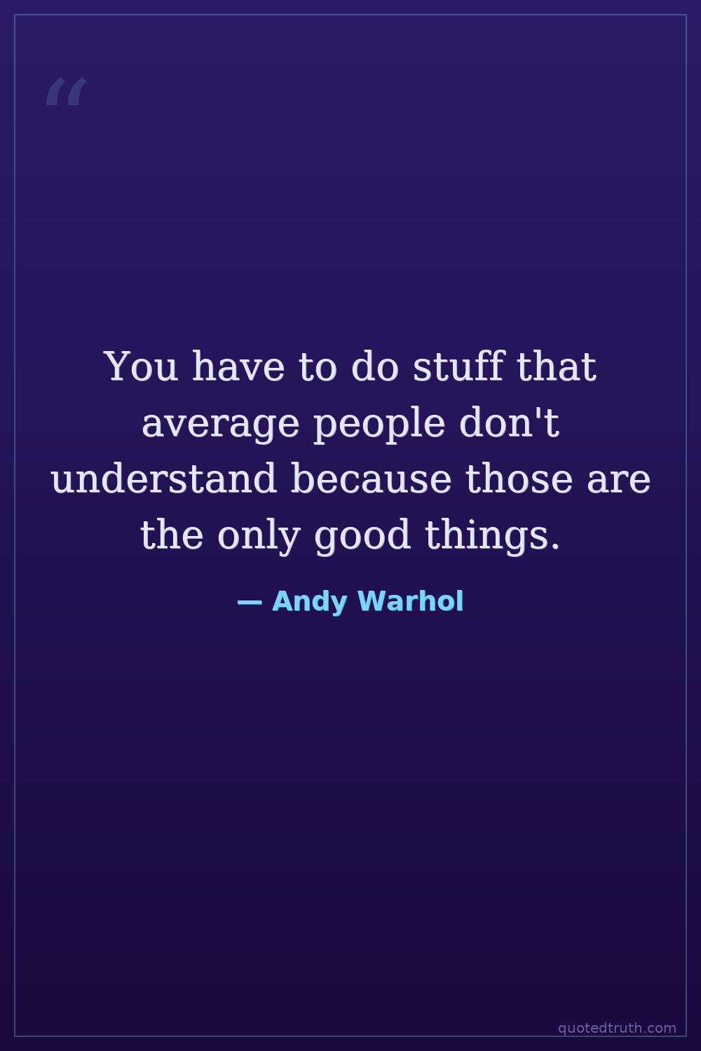 You have to do stuff that average people don't understand because those are the only good things.