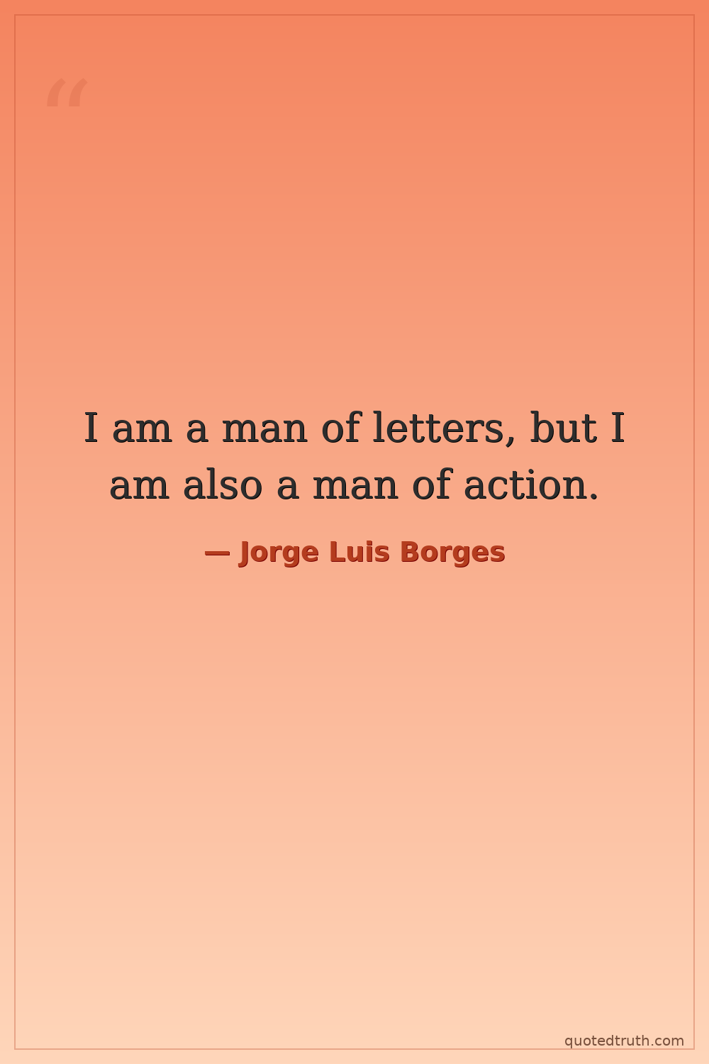 I am a man of letters, but I am also a man of action.