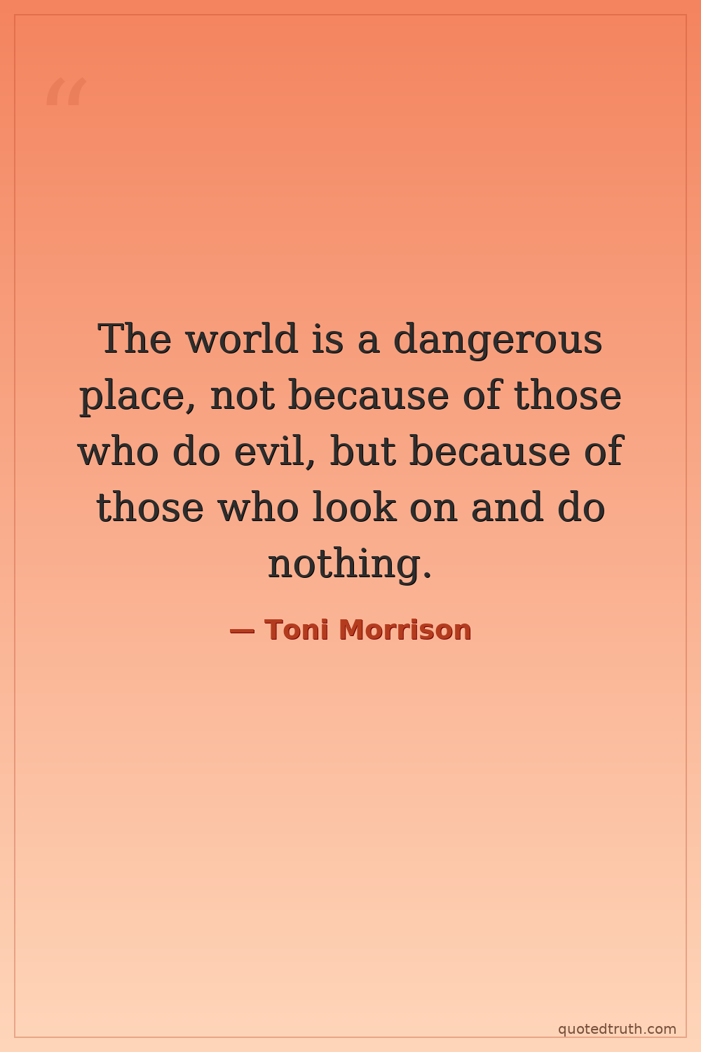 The world is a dangerous place, not because of those who do evil, but because of those who look on and do nothing.