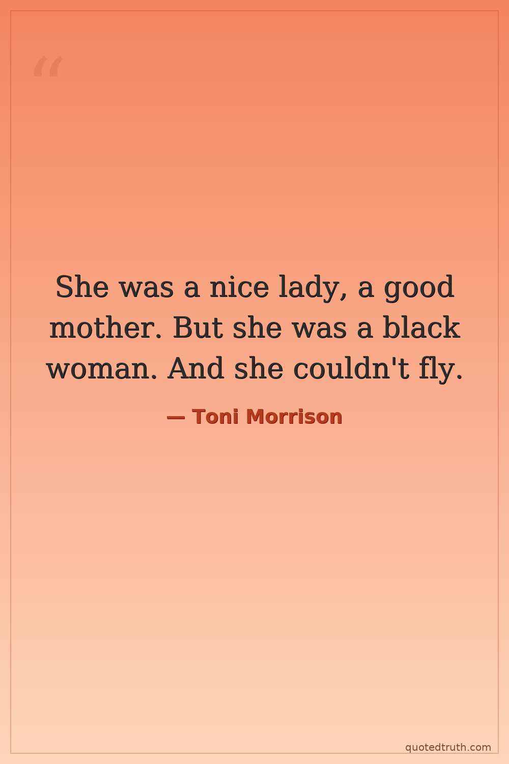 She was a nice lady, a good mother. But she was a black woman. And she couldn't fly.
