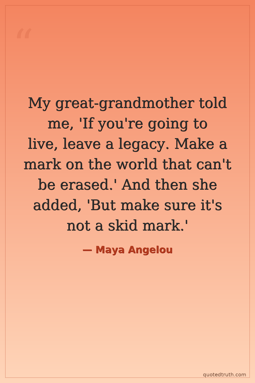 My great-grandmother told me, 'If you're going to live, leave a legacy. Make a mark on the world that can't be erased.' And then she added, 'But make sure it's not a skid mark.'