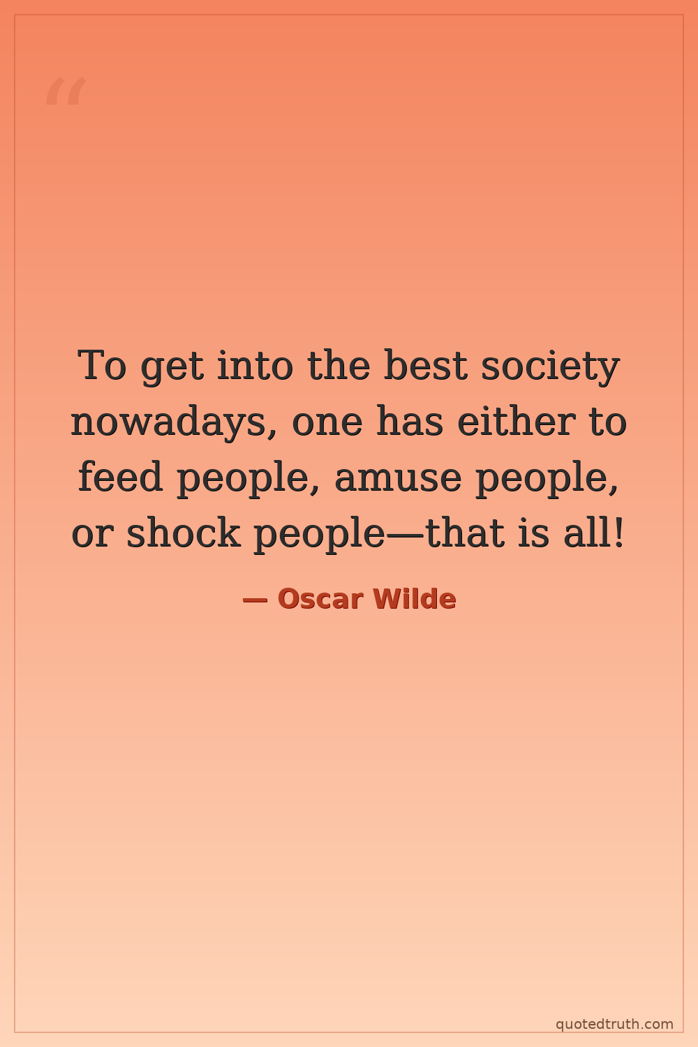 To get into the best society nowadays, one has either to feed people, amuse people, or shock people—that is all!