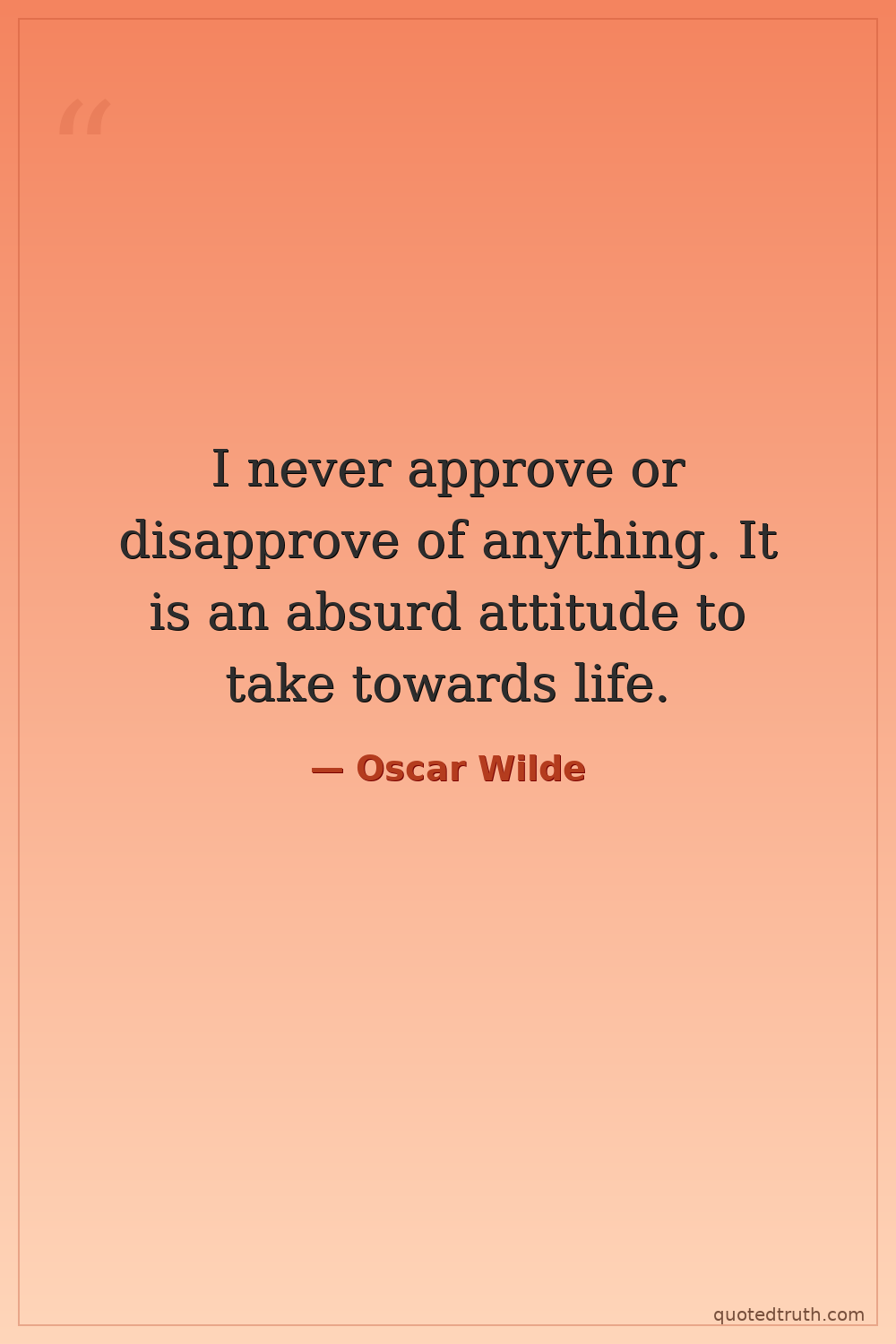 I never approve or disapprove of anything. It is an absurd attitude to take towards life.