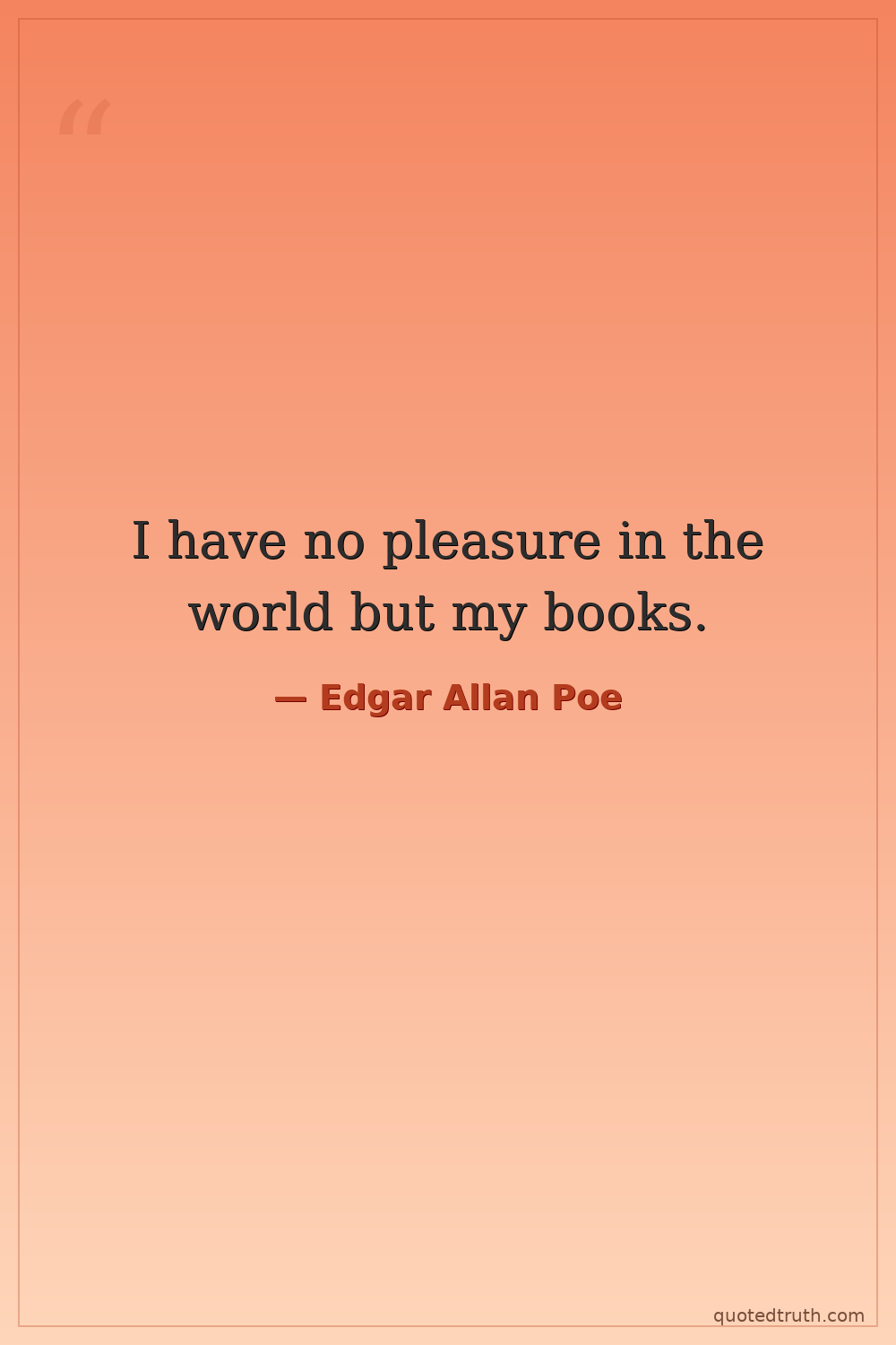 I have no pleasure in the world but my books.
