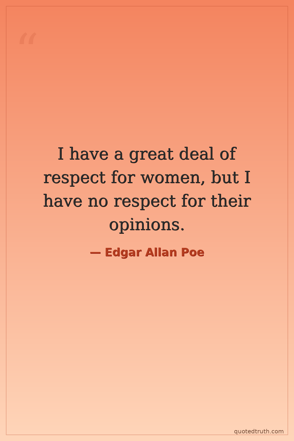 I have a great deal of respect for women, but I have no respect for their opinions.