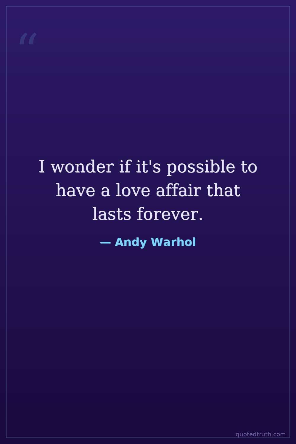 I wonder if it's possible to have a love affair that lasts forever.