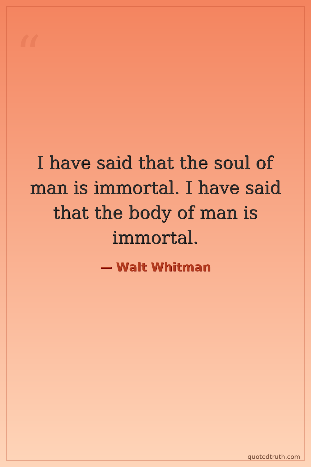 I have said that the soul of man is immortal. I have said that the body of man is immortal.
