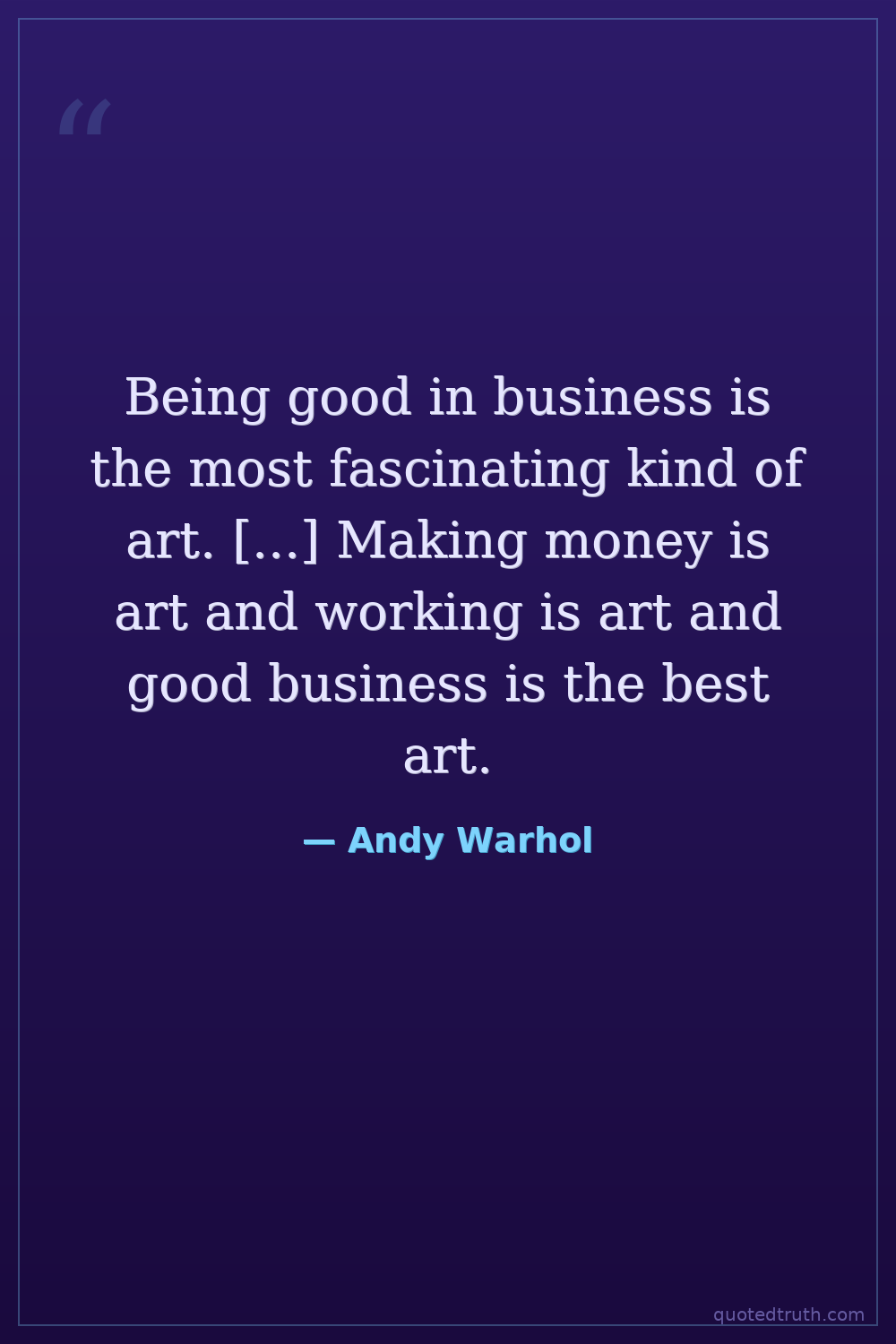 Being good in business is the most fascinating kind of art. [...] Making money is art and working is art and good business is the best art.
