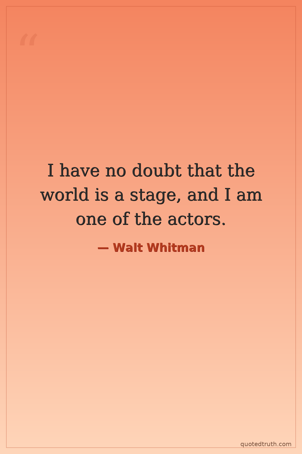 This is a misattribution. The quote is from Shakespeare's As You Like It. Whitman did not say this.