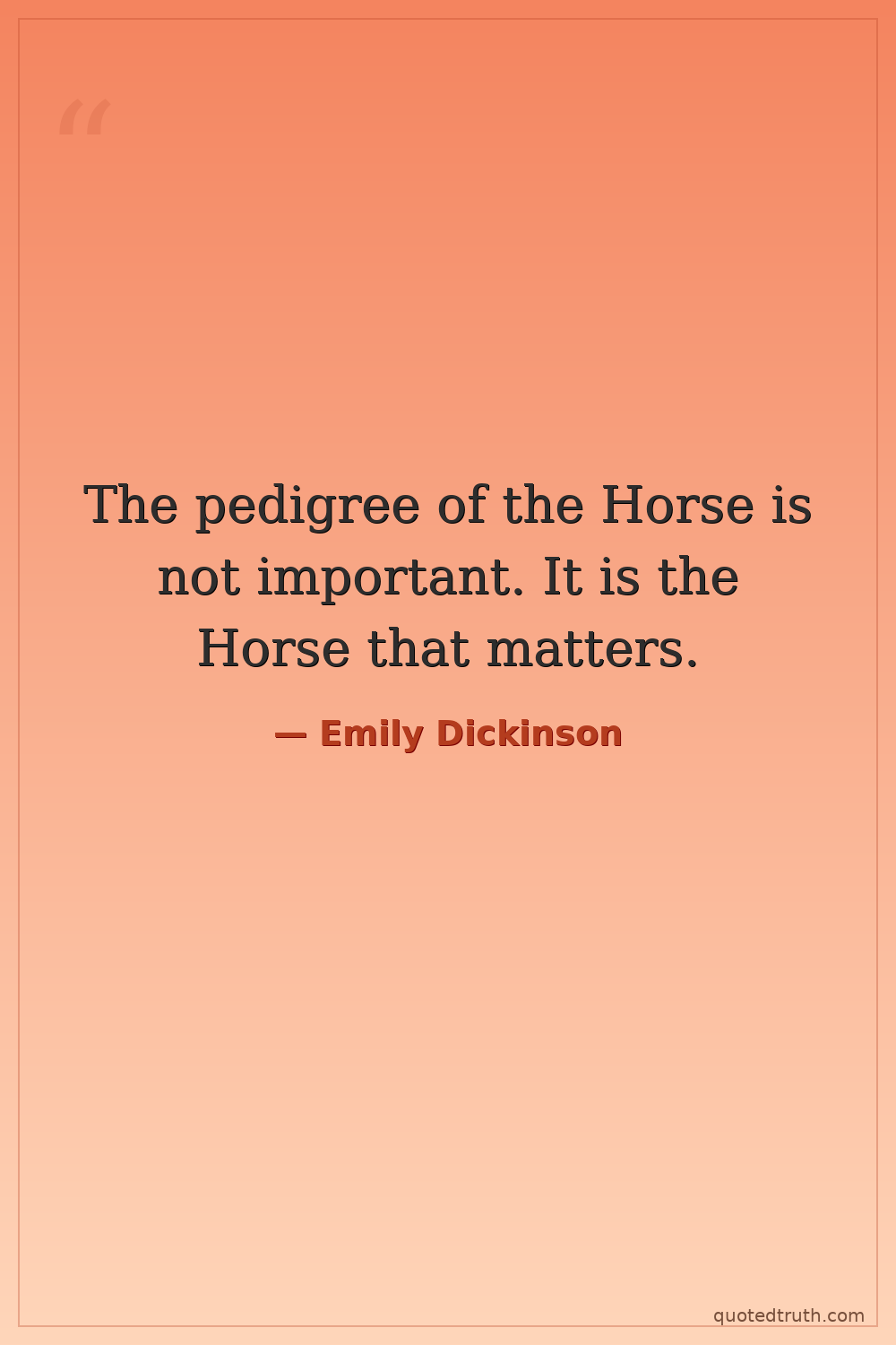 The pedigree of the Horse is not important. It is the Horse that matters.