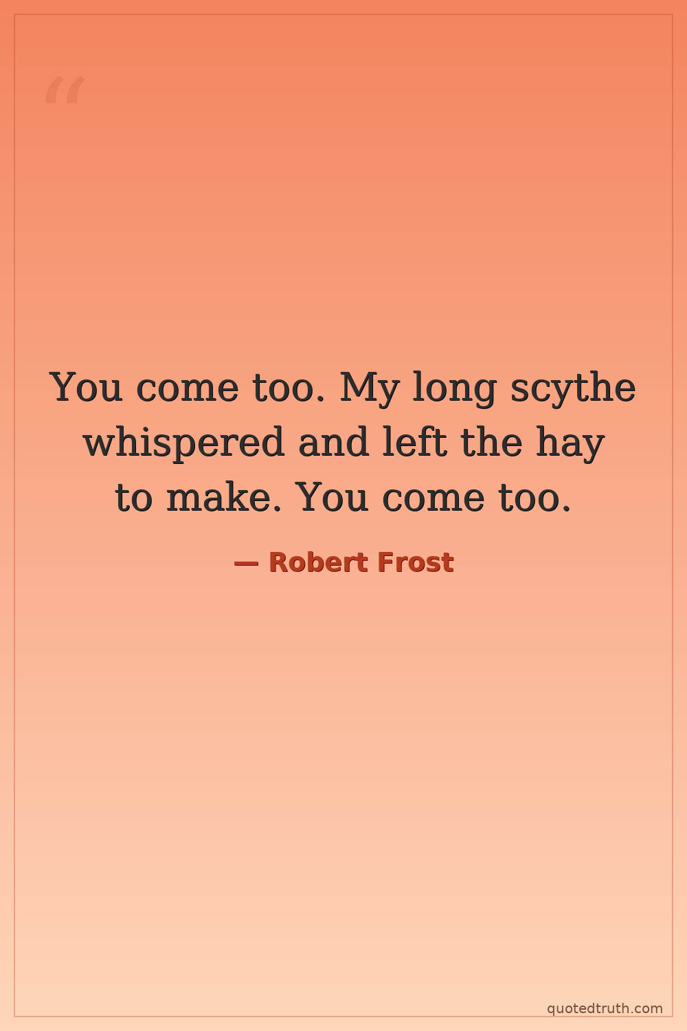 You come too. My long scythe whispered and left the hay to make. You come too.