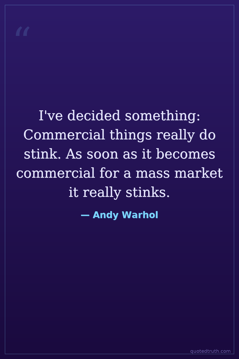 Contradictory statement from someone who commercialized art.