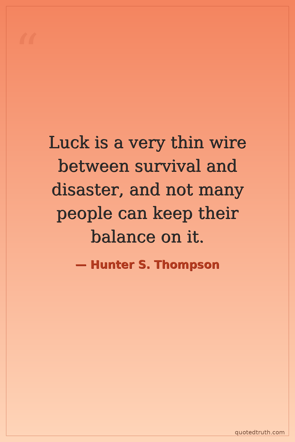 Luck is a very thin wire between survival and disaster, and not many people can keep their balance on it.