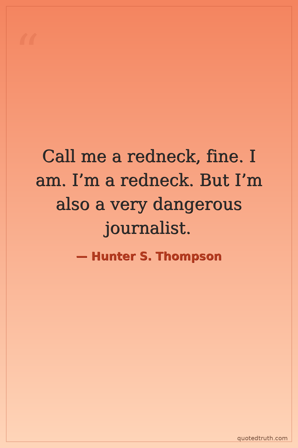 Call me a redneck, fine. I am. I’m a redneck. But I’m also a very dangerous journalist.