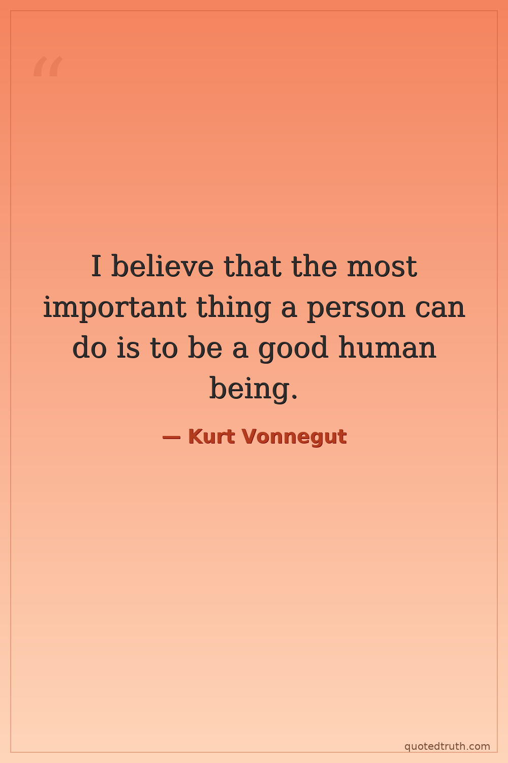 I believe that the most important thing a person can do is to be a good human being.