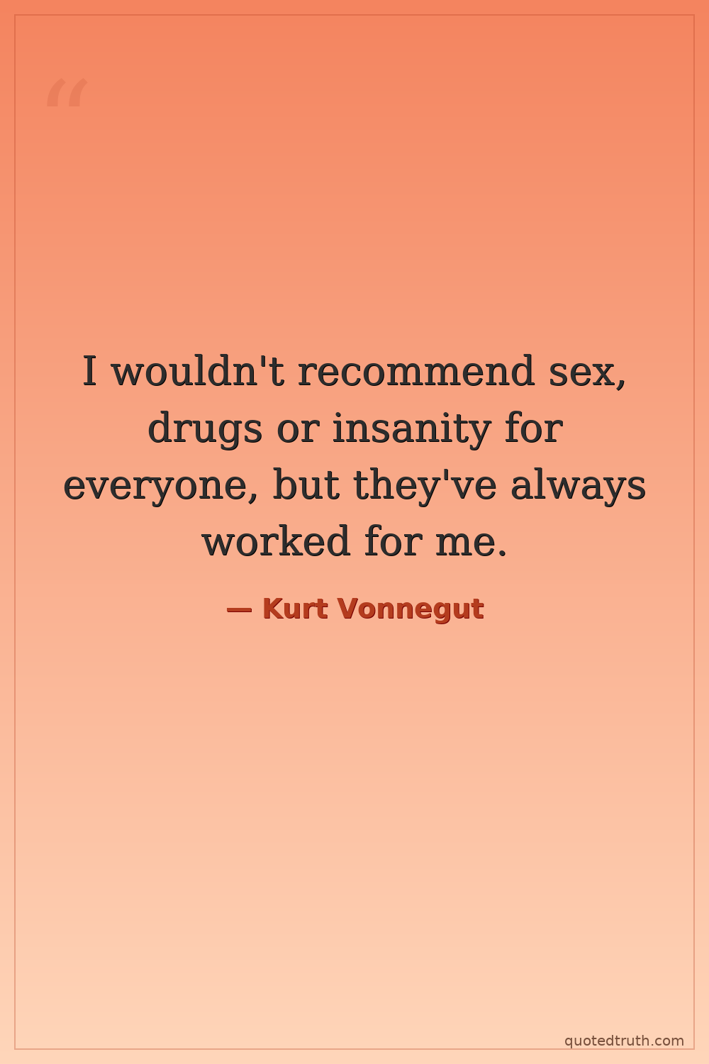 I wouldn't recommend sex, drugs or insanity for everyone, but they've always worked for me.