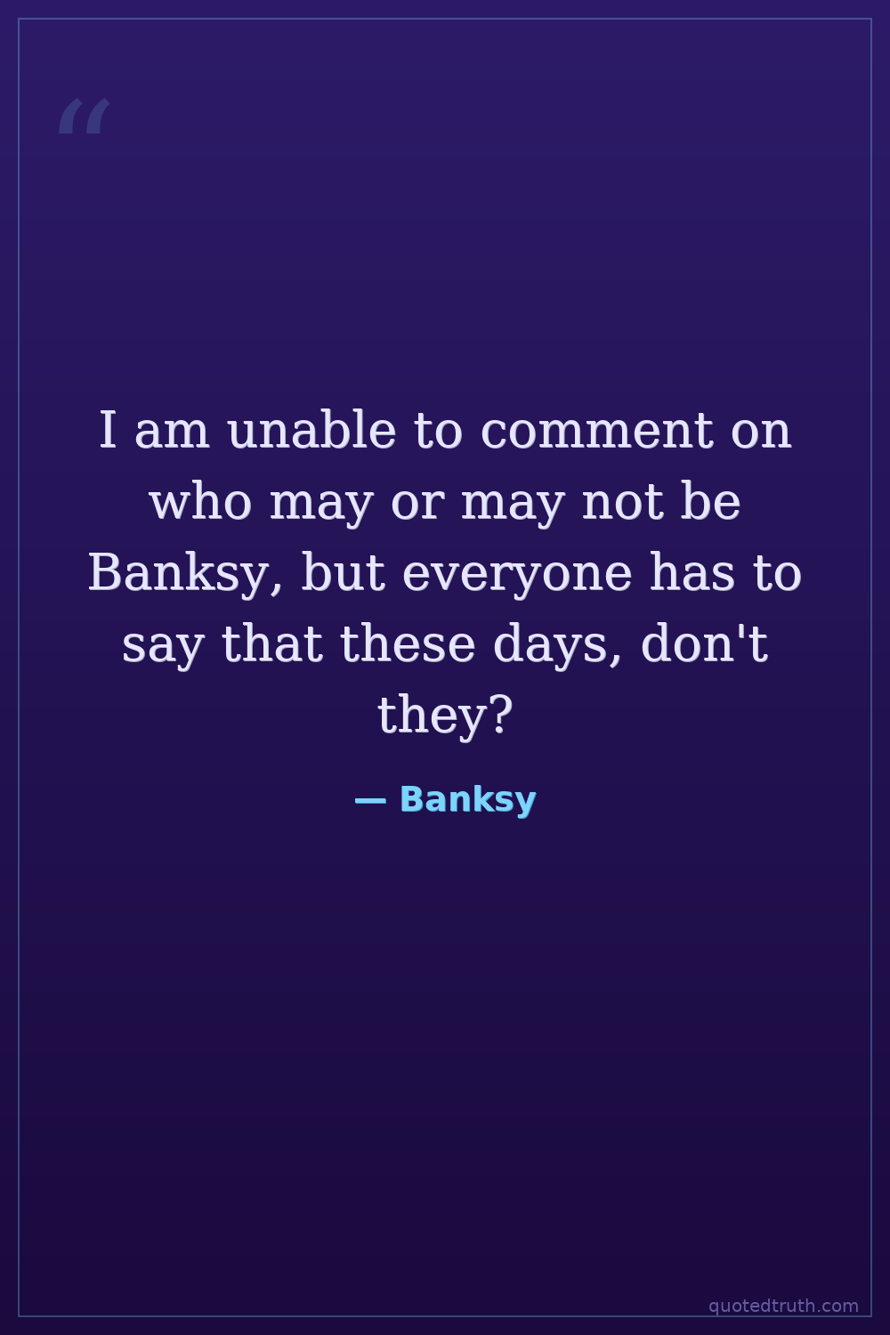 I am unable to comment on who may or may not be Banksy, but everyone has to say that these days, don't they?
