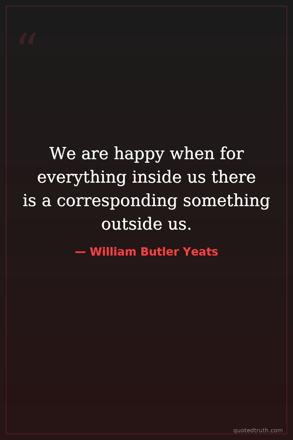 We are happy when for everything inside us there is a corresponding something outside us.