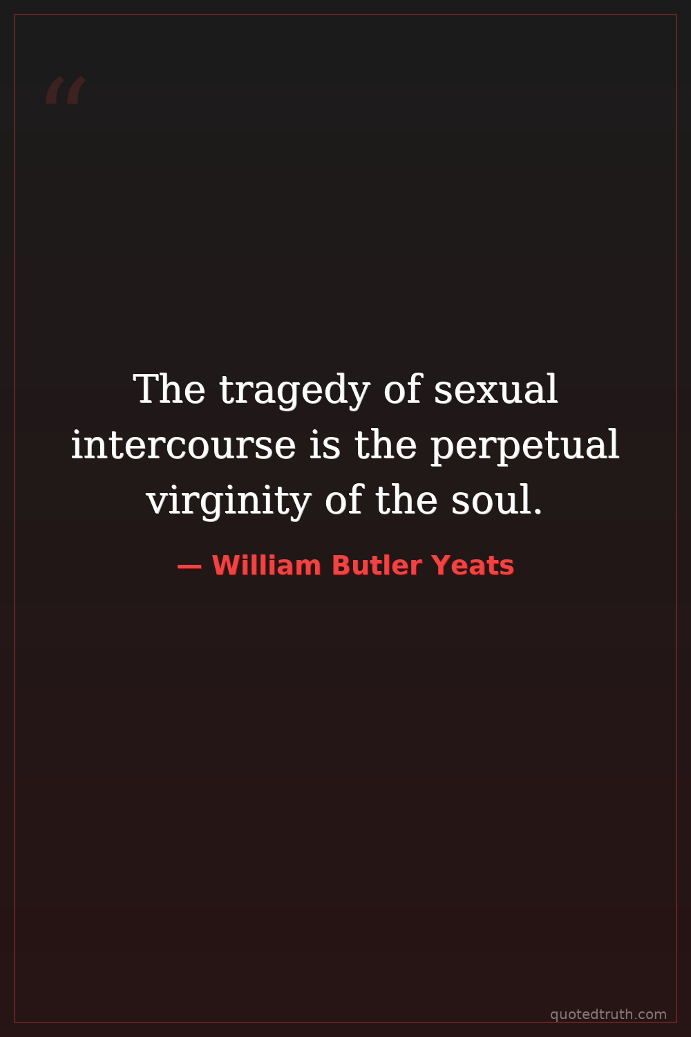 The tragedy of sexual intercourse is the perpetual virginity of the soul.