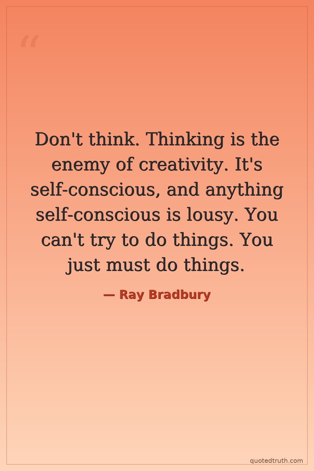 Don't think. Thinking is the enemy of creativity. It's self-conscious, and anything self-conscious is lousy. You can't try to do things. You just must do things.