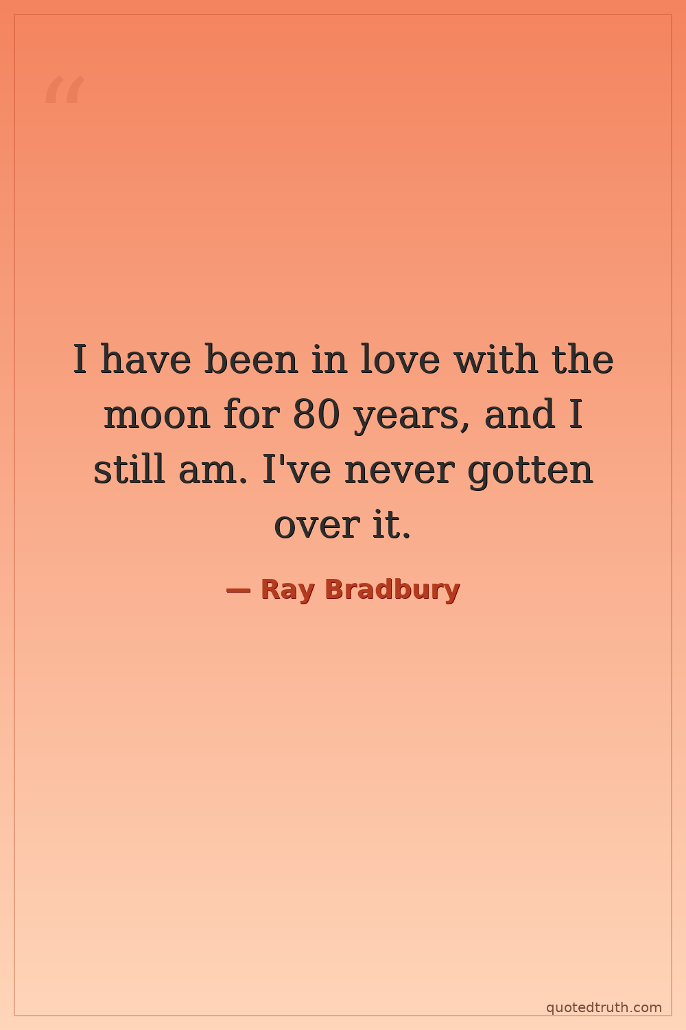I have been in love with the moon for 80 years, and I still am. I've never gotten over it.