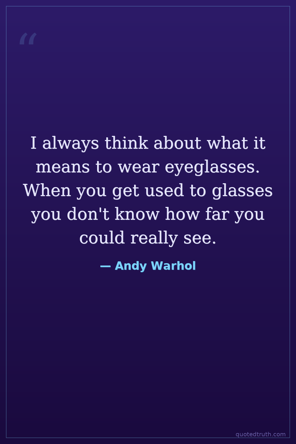 I always think about what it means to wear eyeglasses. When you get used to glasses you don't know how far you could really see.