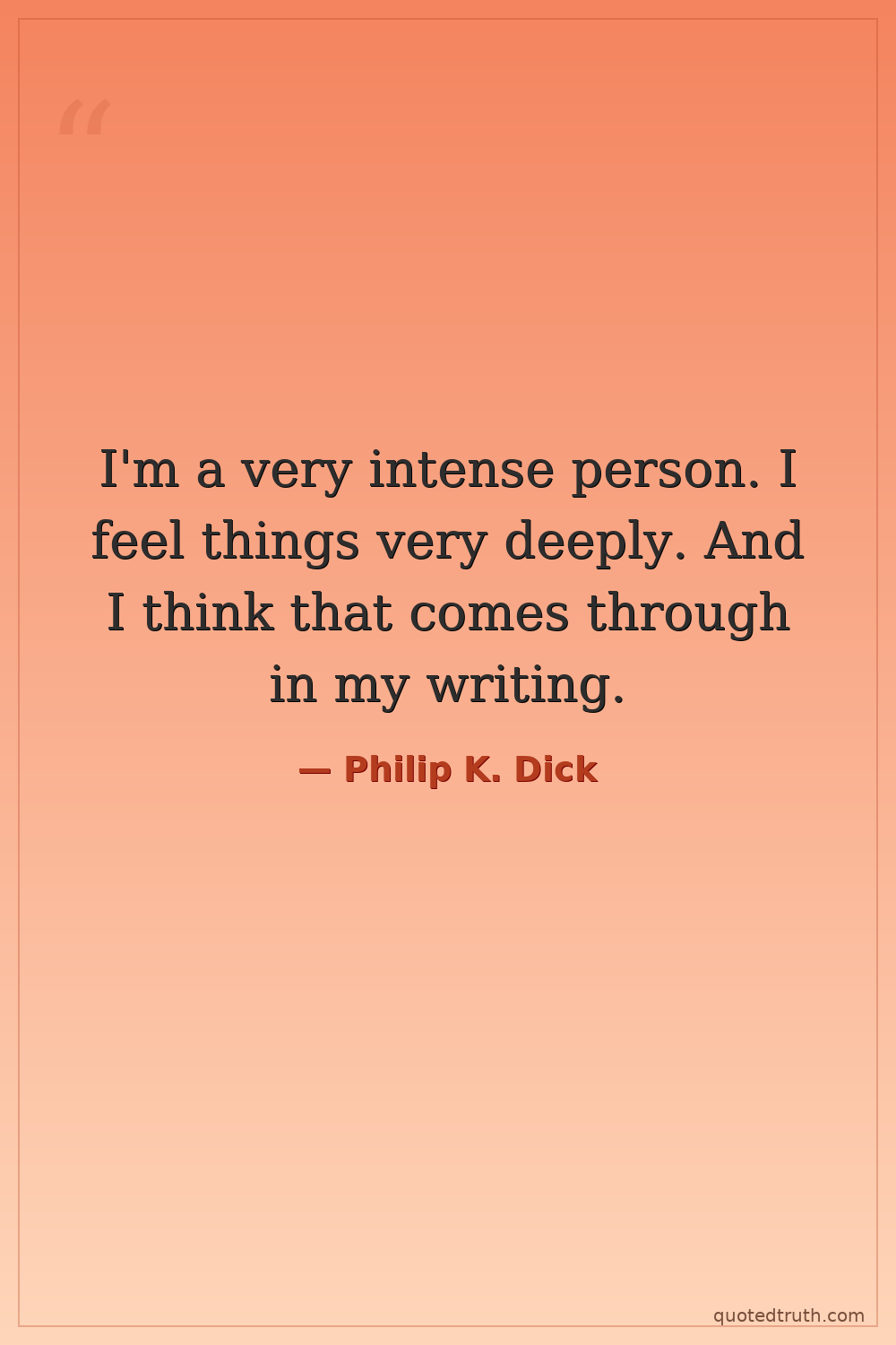 I'm a very intense person. I feel things very deeply. And I think that comes through in my writing.