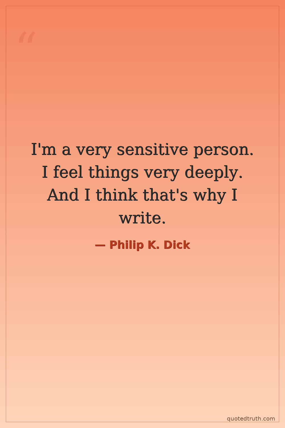 I'm a very sensitive person. I feel things very deeply. And I think that's why I write.
