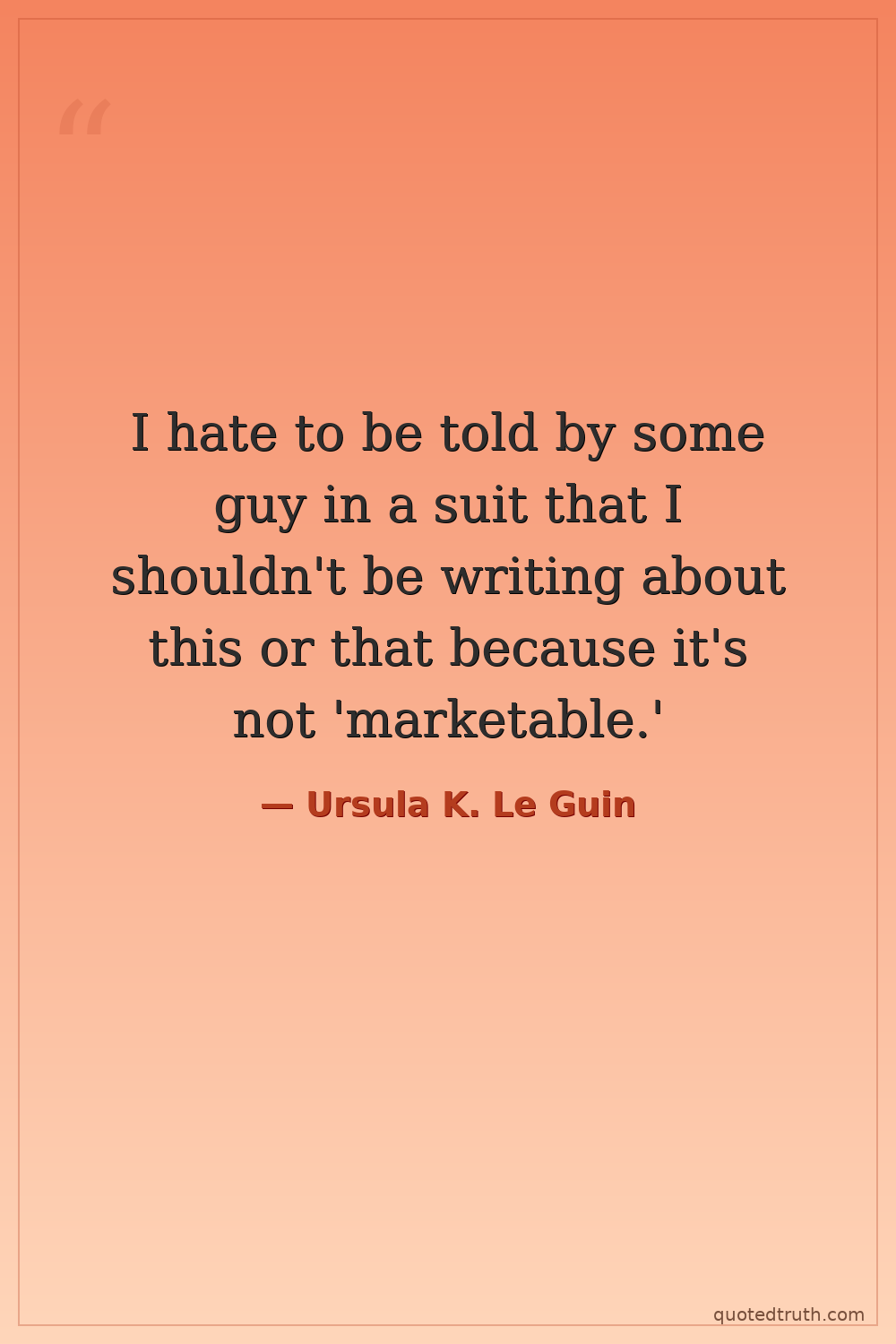 I hate to be told by some guy in a suit that I shouldn't be writing about this or that because it's not 'marketable.'