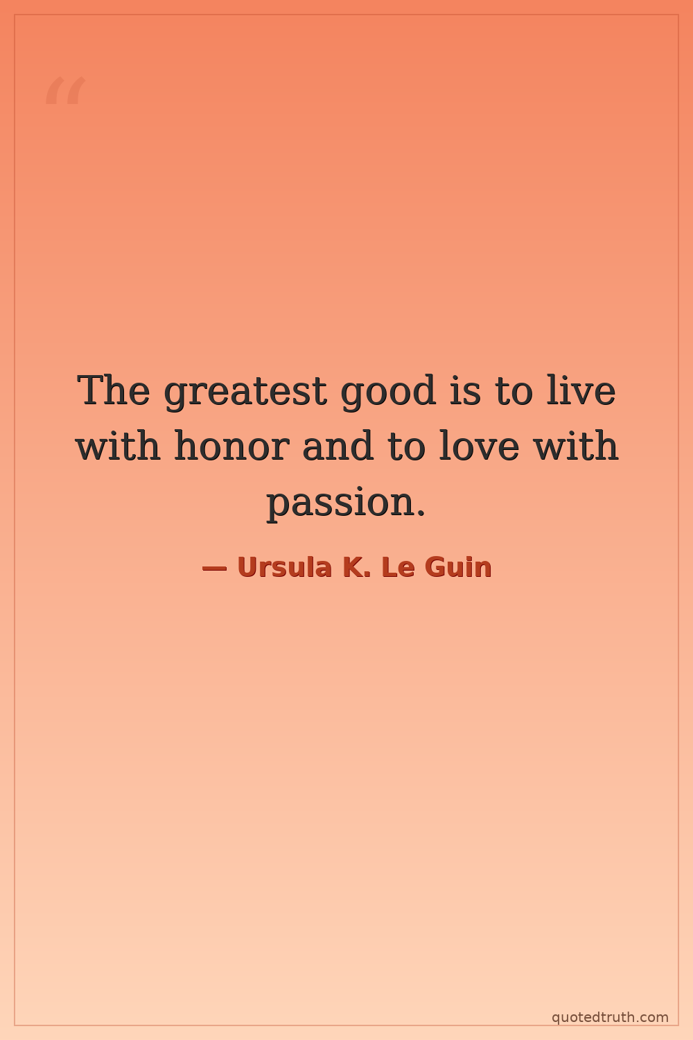 The greatest good is to live with honor and to love with passion.