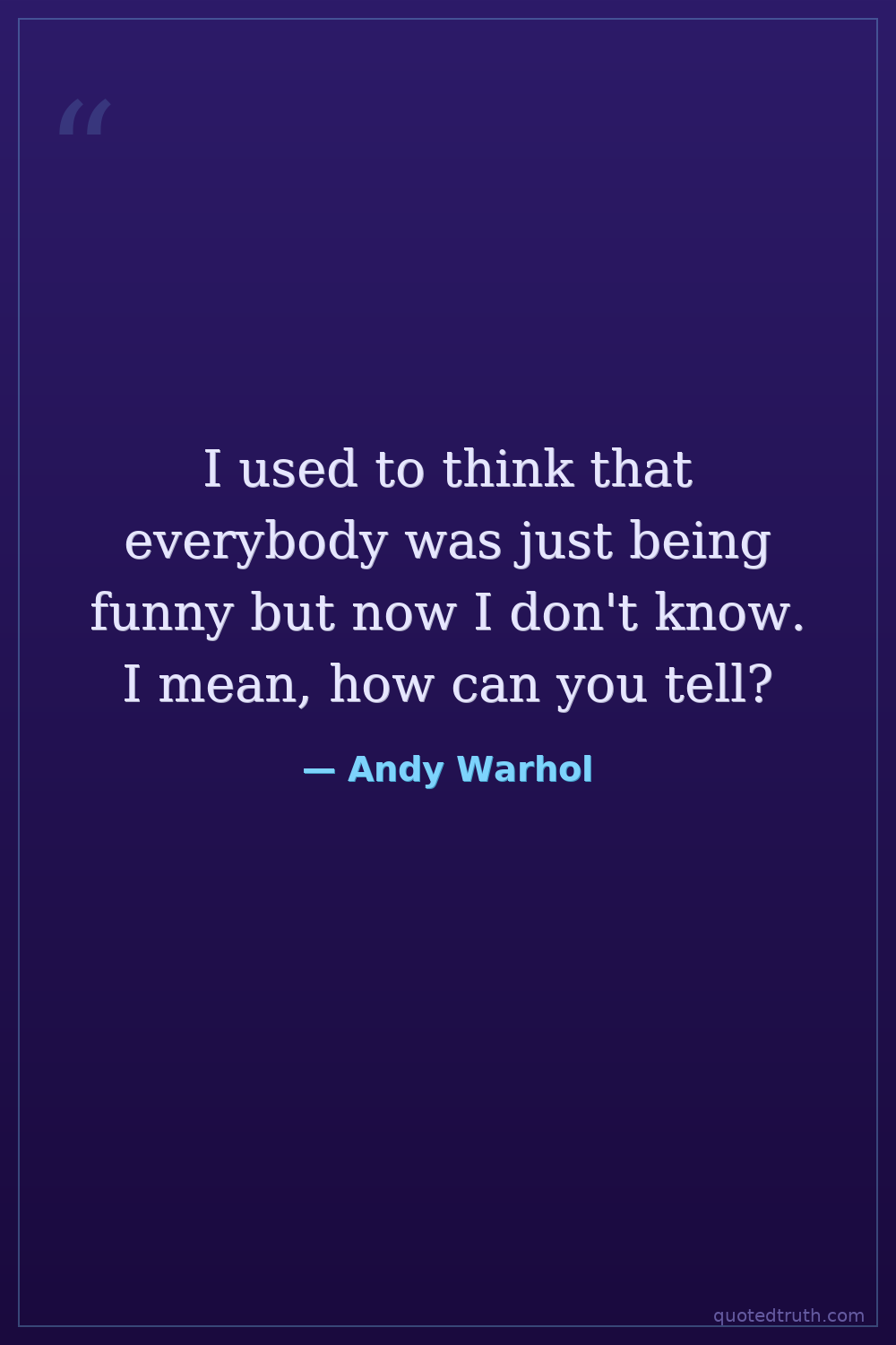 I used to think that everybody was just being funny but now I don't know. I mean, how can you tell?