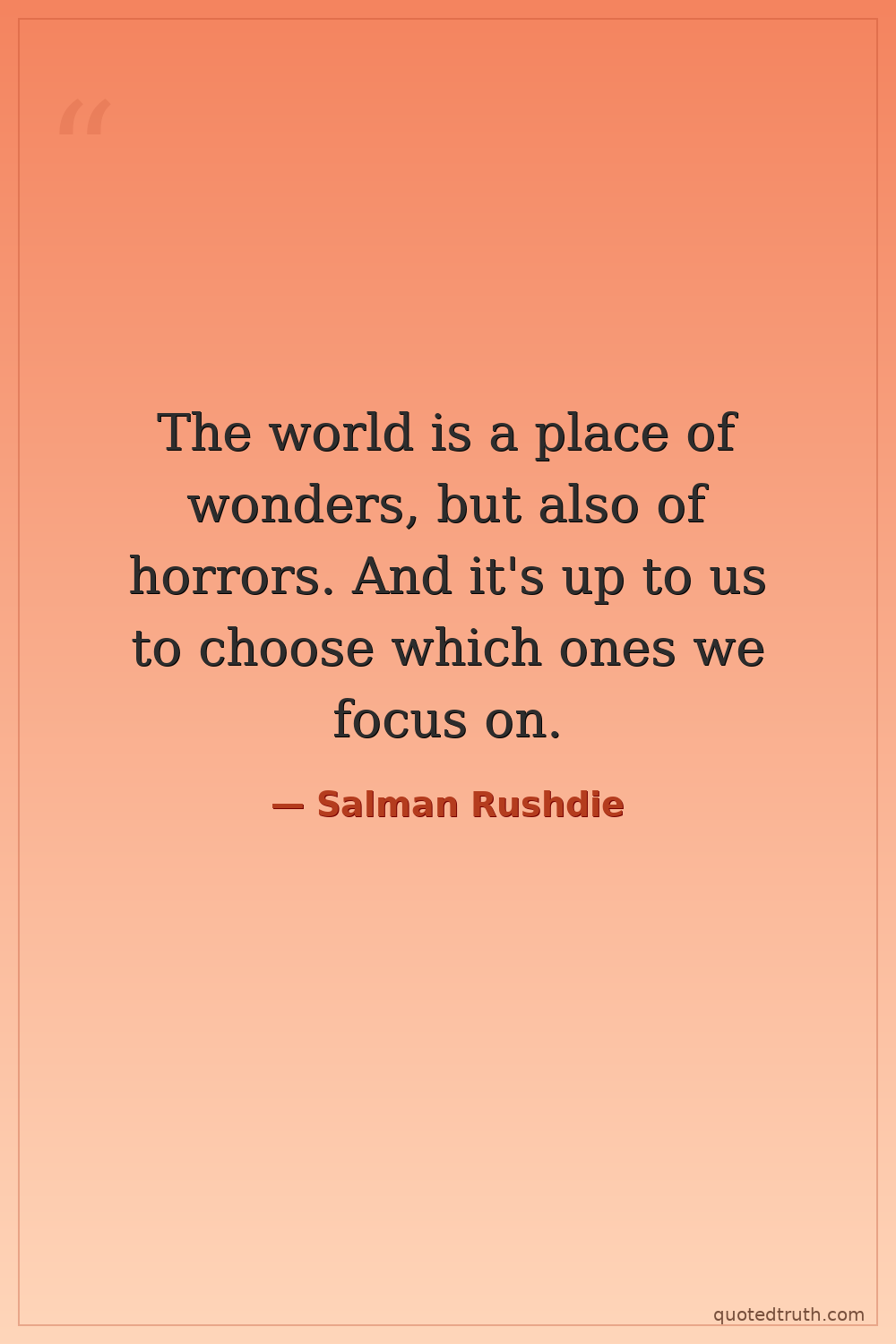 The world is a place of wonders, but also of horrors. And it's up to us to choose which ones we focus on.