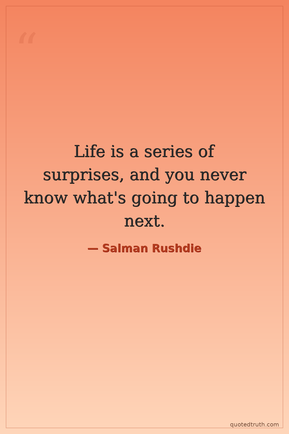 Life is a series of surprises, and you never know what's going to happen next.