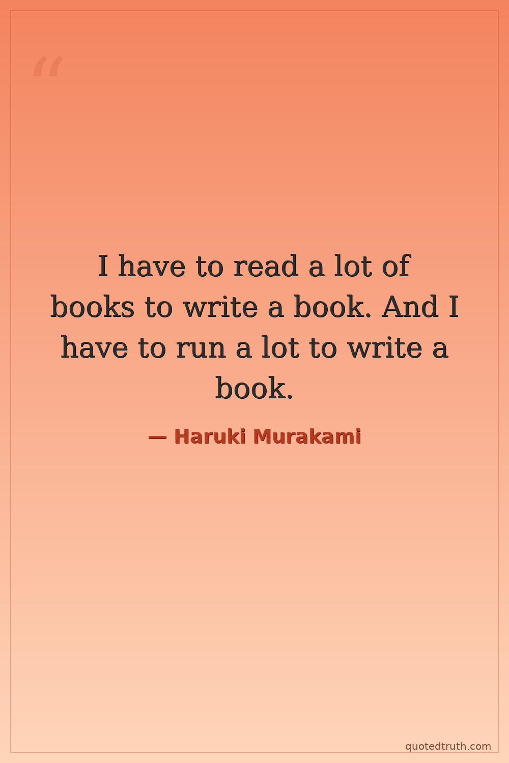 I have to read a lot of books to write a book. And I have to run a lot to write a book.