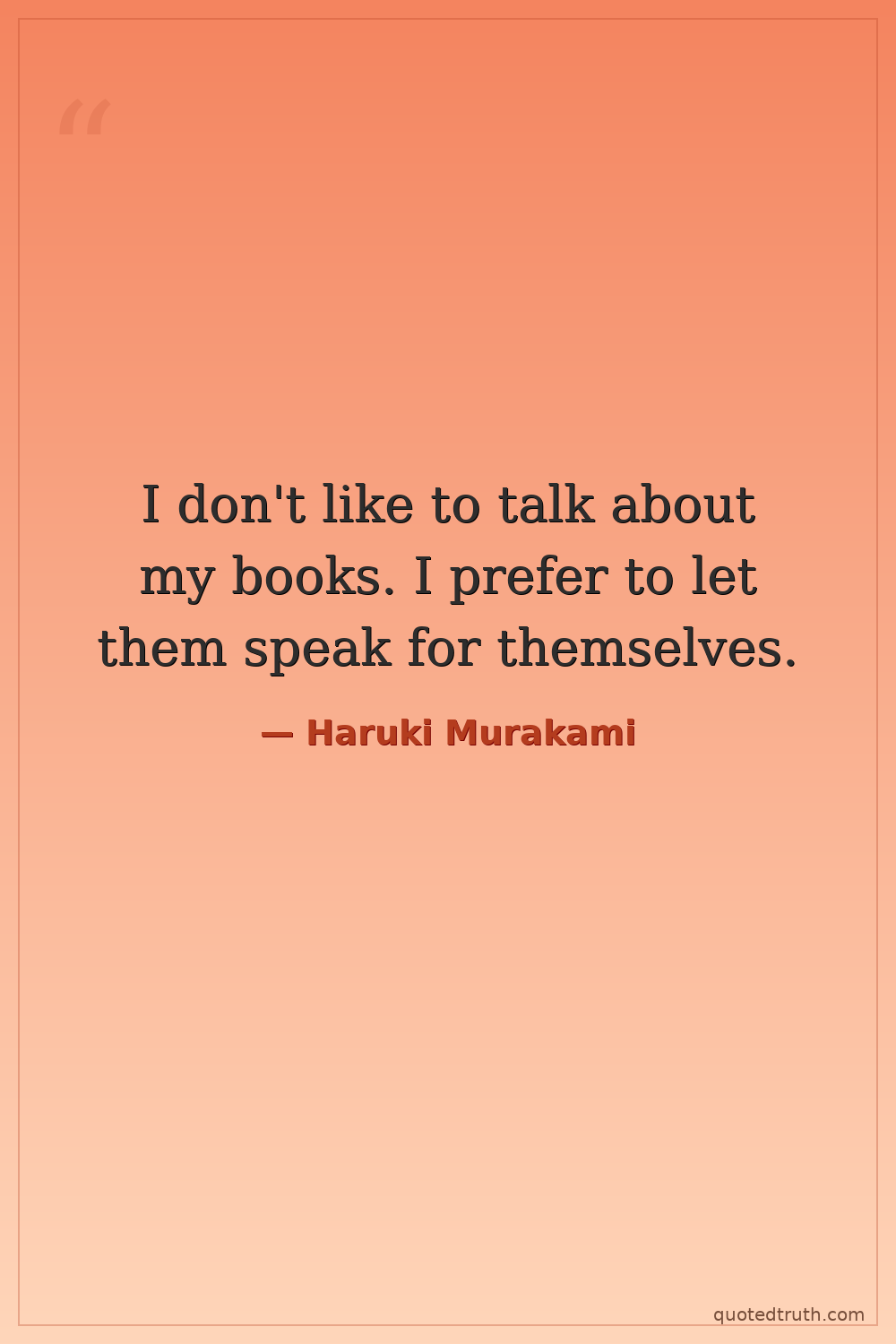 I don't like to talk about my books. I prefer to let them speak for themselves.
