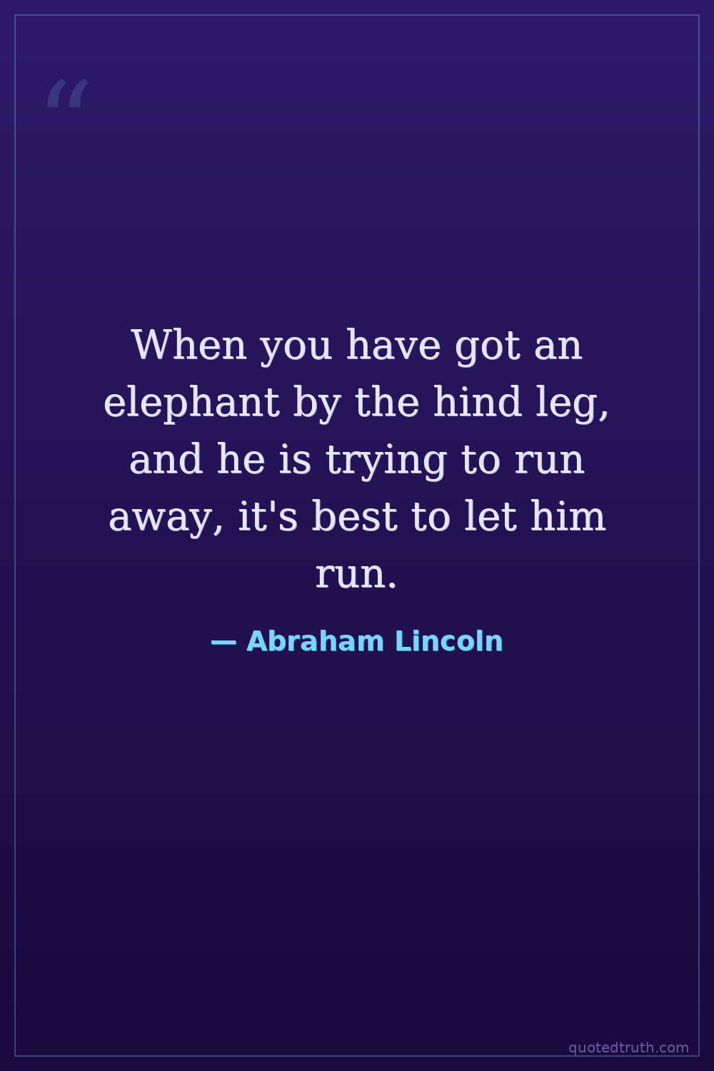 When you have got an elephant by the hind leg, and he is trying to run away, it's best to let him run.