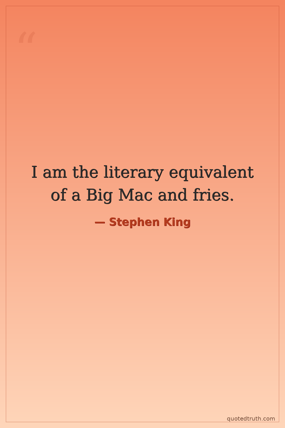 I am the literary equivalent of a Big Mac and fries.