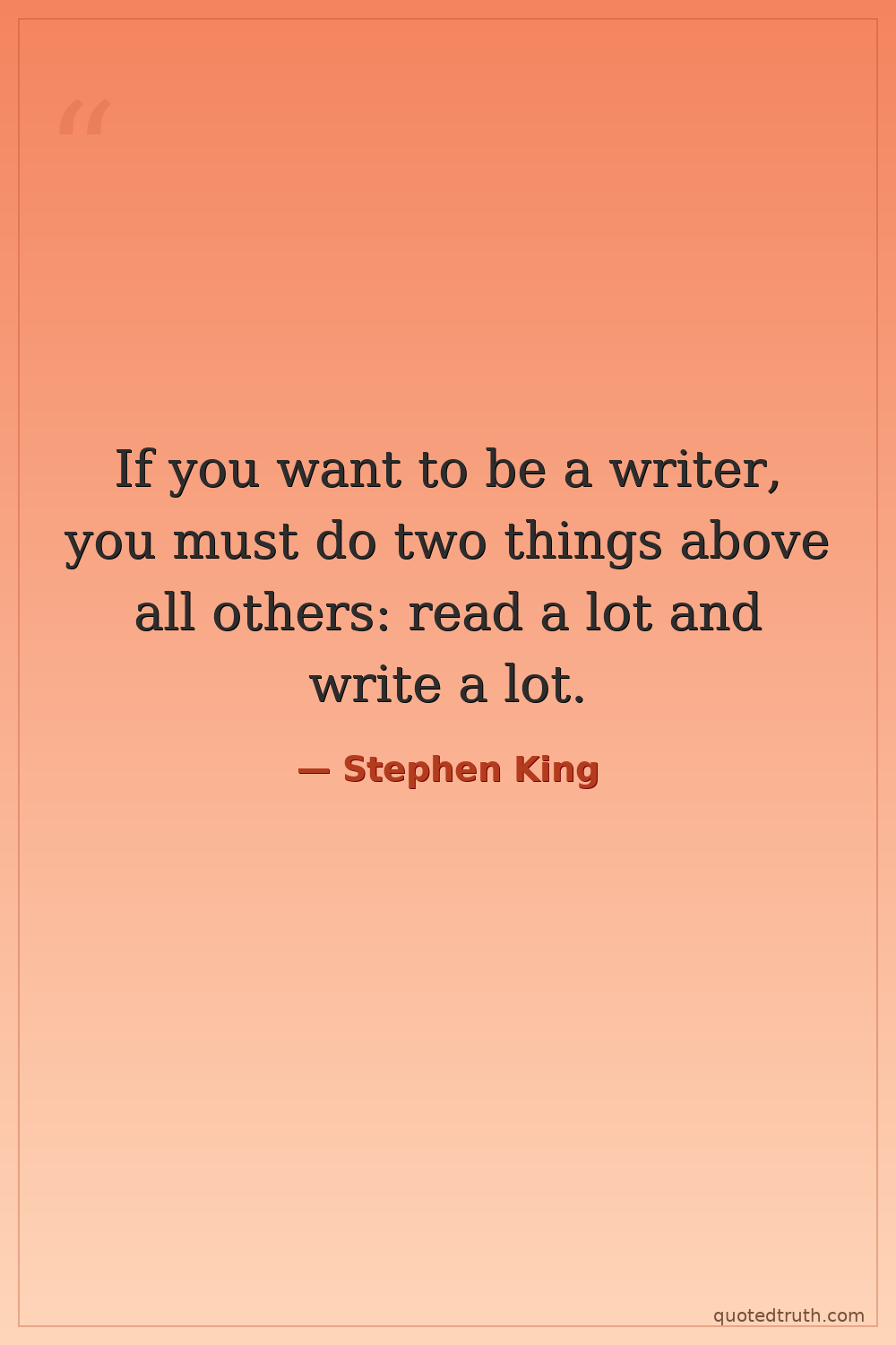 If you want to be a writer, you must do two things above all others: read a lot and write a lot.